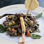 A Hotel & Spa Croce Bianca minden reggel ingyenes olasz reggelit kínál. A Poschiavo városi ingatlan saját à la carte restaurant éttermet kínál, ahol a vendégek lokale ételeket kóstolhatnak meg. A vendégeket a helyszínen egy társalgóbár várja. A Poschiavo városi hoteltől pillanatokra található Hostaria Del Borgo Zwitserse fogásokra specializálódott.